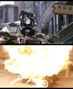 主に銃を使うアメリカのギャング映画とは違ってジャッキー映画はカンフーアクションで抗争。ジェームズ・ボンドばりに「帽子投げ」をやったり、身近にあるもので敵を撃退したり。